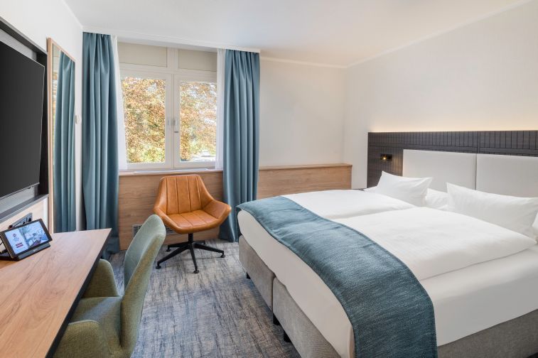 Komfort Plus Zimmer, Blick auf den Park, geräumiges Zimmer, gemütliche Sitzecke, Klimaanlage, Schreibtisch, Minikühlschrank, kostenfreies WLAN, Flatscreen TV