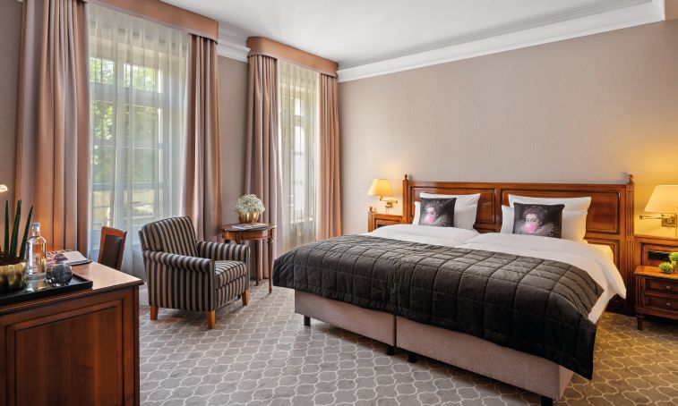 Classic Zimmer, 25m², exklusive Möbel, Marmor-Granit Badezimmer mit Dusche und teilweise Badewanne, kostenfreies WLAN, auf Wunsch auch mit zwei Einzelbetten