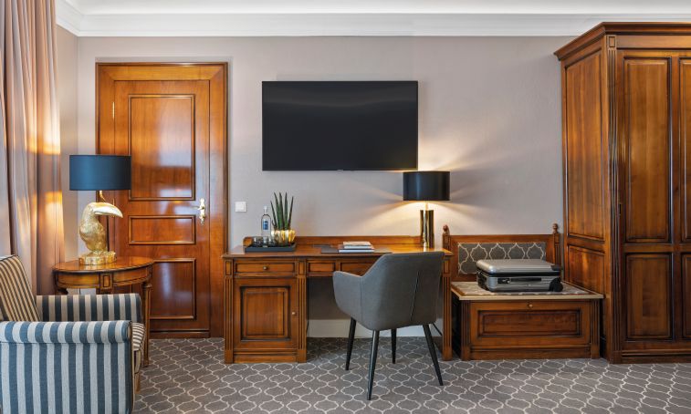 Classic Zimmer, 21m², exklusive Möbel, Marmor-Granit Badezimmer mit Dusche und teilweise Badewanne, kostenfreies WLAN